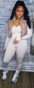 This taupe puffer vest is for my girls who love a good neutral vibe. Throw it on with a cute set, some kicks, and you’re good to go. Lightweight but warm, it’s the perfect vibe for running the streets or pulling up casual but cute.